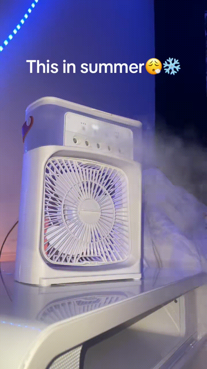 The Cool Humidifier Fan combines soothing mist, soft LED lighting, and quiet operation in a compact, USB-powered design—perfect for your desk, bedside, or travel setup.